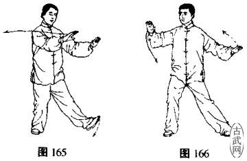两臂分开时要保持弧行,弓步动作与分手的速度要均匀一致;身体转动时要以腰为轴带动上肢做动作;移动重心时上体要保持平稳,不可前俯后仰;胸部宽松舒展。